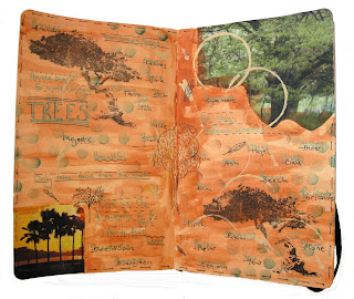 As well as my Art Journal Caravan journal (AJC) (see previous posts), I have decided to also have another journal on the go. This way I can keep the weekly themes provided by AJC together whilst experimenting in the second book. Here are the first (very different) pages from my second journal. Double click on them to see the details.