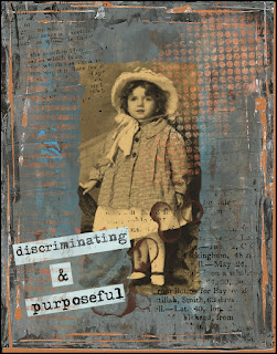 I altered the photo very little, just giving it rough edges but I have altered the background quite a lot, though quite subtly, to integrate the photo into it. I thought the little girl looked very discerning, hence the words! Let me know what you think.
