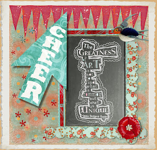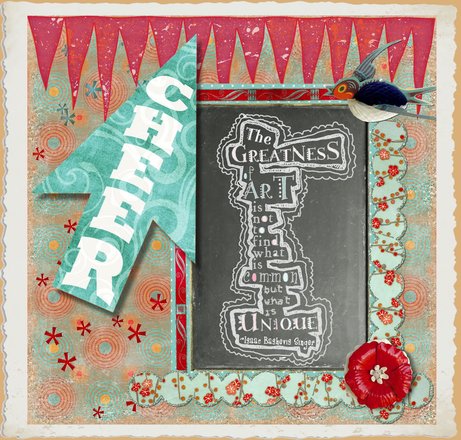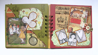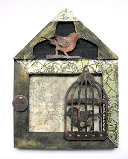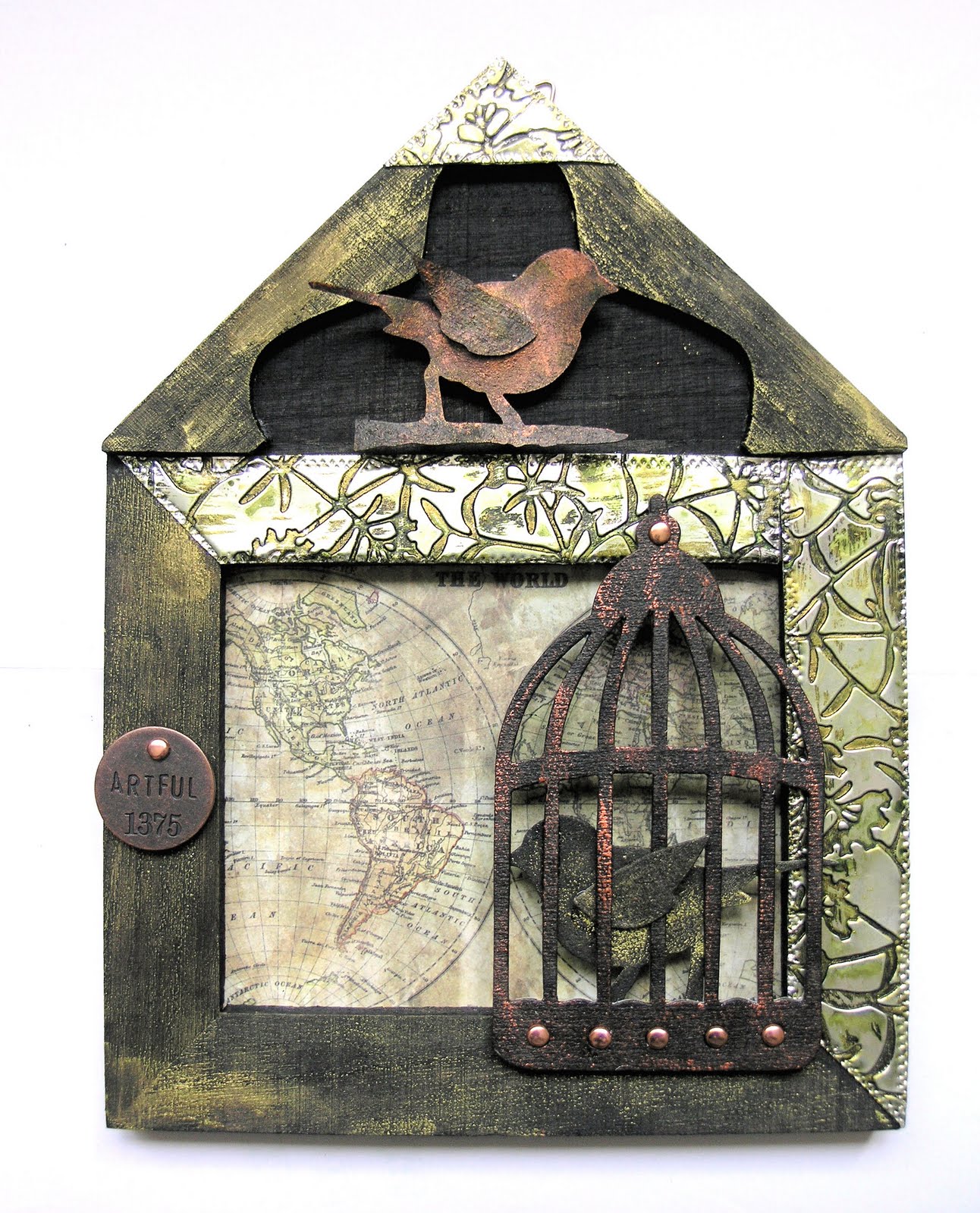 I made the embellishments from Grunge Paper using Tim Holtz Sizzix dies, painted them with black acrylic paint and then added some colour with Inka-Gold. I added brads to the bottom of the cage and used another in the 'artful' Idea-ology piece.