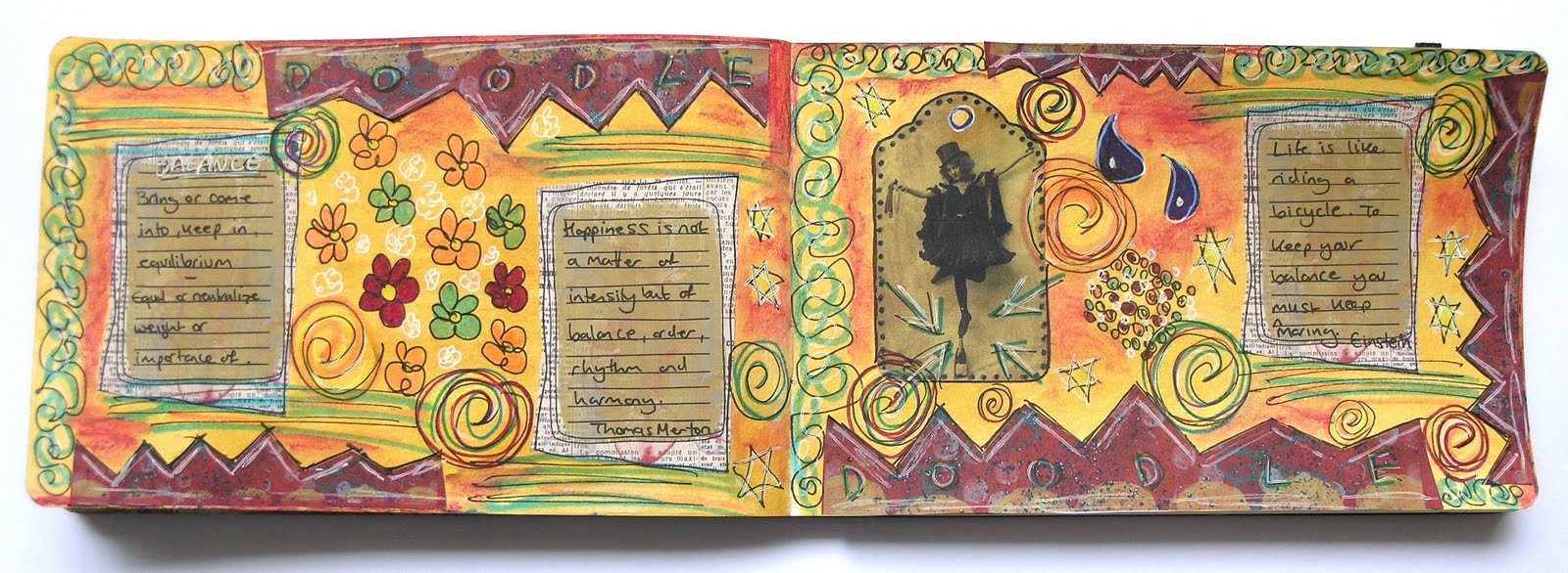 Can you believe it? We are half way through the year! The theme from Art Journal Caravan this week is balance and we were given the instruction to doodle. I don't think I achieved this on my digital page, but I had fun with my mixed media ones.
